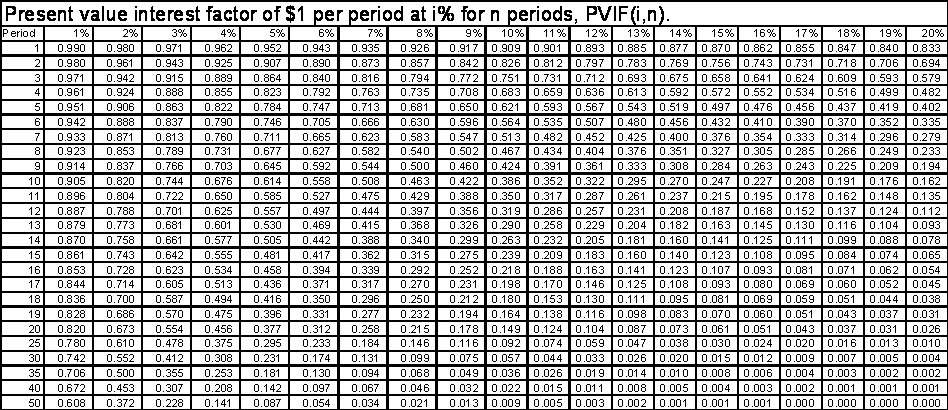 Normally however when we are trying to choose between different investment alternatives we have different cash flows over different time periods. We have to look at each of the figures for each year and "discount" them in accordance with the interest rate figures in the discount tables.